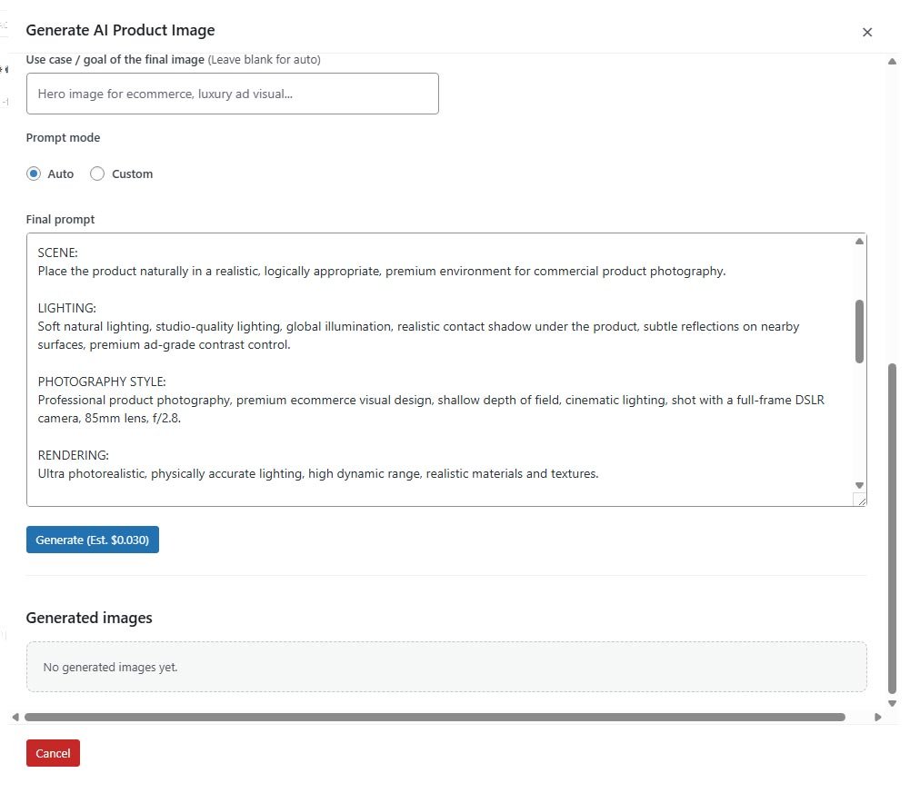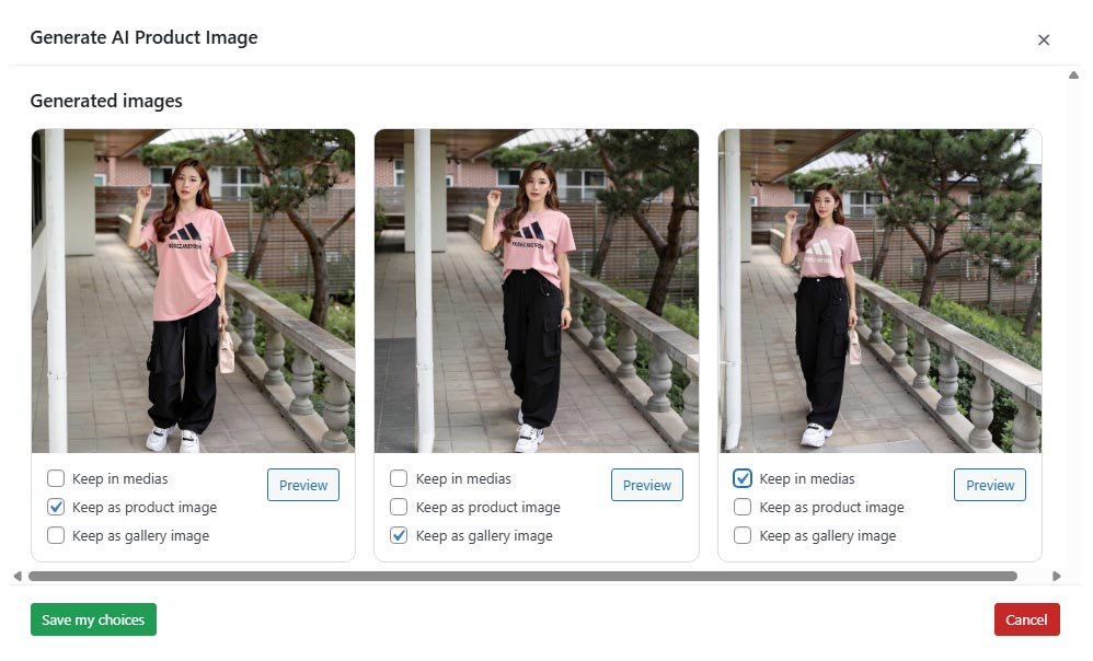 Use handy shortcuts to manage your AI-generated images in seconds. Preview them instantly, save them to the media library, or add them directly as the featured image or to the product gallery. Everything is designed to streamline your workflow and save time.