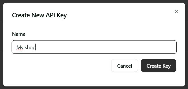 Choose a random name for your key, like “My Shop” and click “Create Key” :