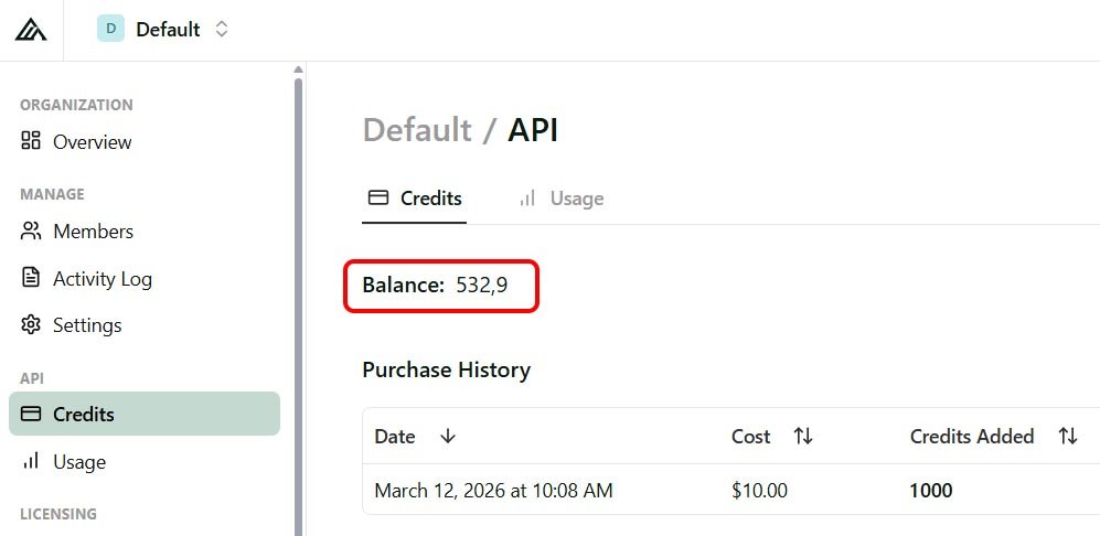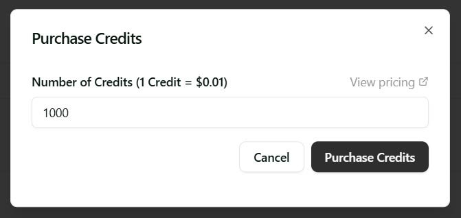- You purchase the number of credits you need, with a minimum of $10 for 1,000 credits ($0.01 per credit).